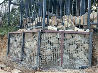 Innovative hardscape designs featuring stone pathways, metal and rock retaining walls, metal fencing installations, and erosion solutions. These projects showcase the art of integrating durable and visually appealing hardscape elements into outdoor spaces.